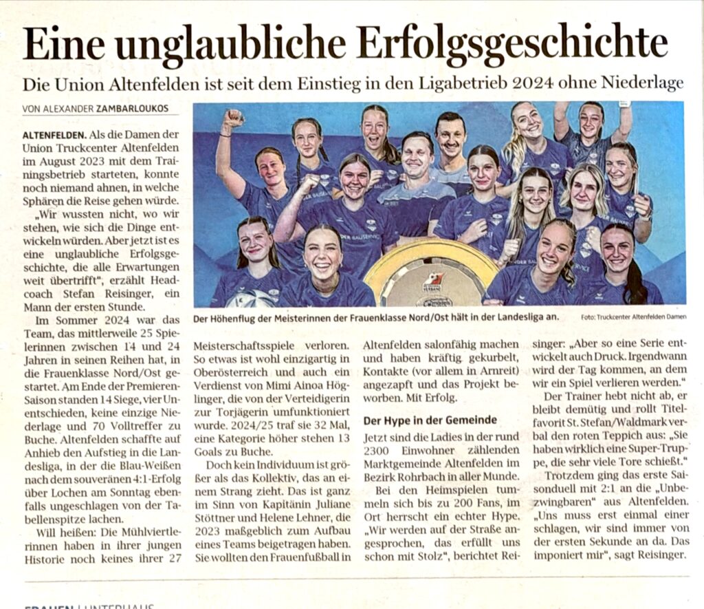 Die Union TRUCKCENTER Altenfelden Damen ist seit dem Einstieg in den Ligabetrieb 2024 ohne Niederlage.